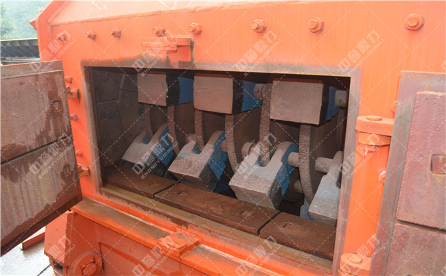 二、提高錘頭利用率,減少錘頭更換時間。錘頭的利用率,更換時間與其結構形式和其固定緊方式有密切的關系。因此可以采用對稱的結構形式,簡單的緊固方式,大翻蓋,大檢修門機殼等方案,可以提高錘頭的金屬利用率,使壽命也有所增加。