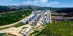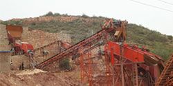 大塊的原料經由原料倉進入振動給料機,使物料以均勻的速度到達破碎腔內部進行破碎,破碎后的物料經過圓振動篩進行篩分,滿足粒度的物料被輸送至成品料堆,不滿足粒度的物料經皮帶輸送機運輸到二級破碎機進行再次破碎,達到規(guī)格粒度物料被運往成品料堆。
