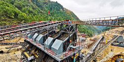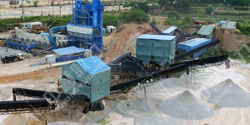 石料生產線在工作過程中,大塊石料經料倉由振動給料機均勻地送進重型錘式破碎機進行粗碎,粗碎后的石料由皮帶輸送機送入錘式破碎機(或反擊式破碎機)進行中碎,中碎后的石料由膠帶輸送機送進振動篩進行篩分,符合規格的石料和成品砂子(篩下物)由膠帶輸送機送至成品料堆;不符合規格的大顆粒石料(篩上物)由皮帶輸送機返回至錘式破碎機再次進行破碎處理,破碎后的石料再經過膠帶輸送機送進振動篩進行篩分,這樣形成閉路多次循環。