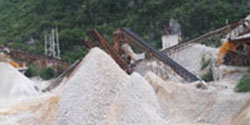 石料生產線在工作過程中,大塊石料經料倉由振動給料機均勻地送進重型錘式破碎機進行粗碎,粗碎后的石料由皮帶輸送機送入錘式破碎機(或反擊式破碎機)進行中碎,中碎后的石料由膠帶輸送機送進振動篩進行篩分,符合規格的石料和成品砂子(篩下物)由膠帶輸送機送至成品料堆;不符合規格的大顆粒石料(篩上物)由皮帶輸送機返回至錘式破碎機再次進行破碎處理,破碎后的石料再經過膠帶輸送機送進振動篩進行篩分,這樣形成閉路多次循環。