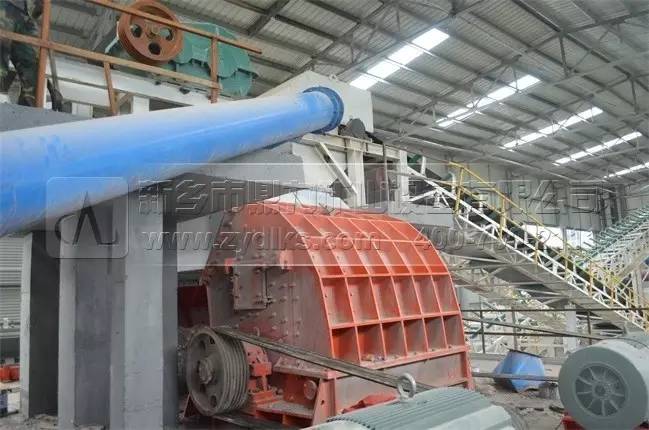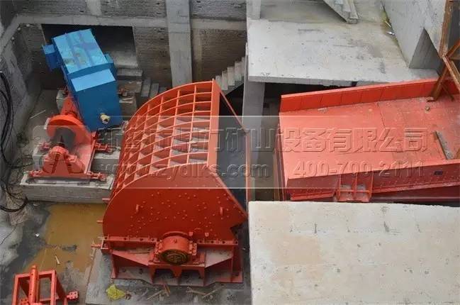上圖為生產線上配置的頭破設備,選用的型號為內目前錘式破碎機單臺產量的PCZ2125破碎機設備,單臺時產量可以達到2500噸以上,是由我們公司自主研發生產的。