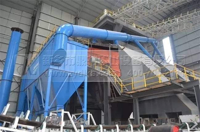 上圖為破碎機生產中產生的粉塵經過輸送管道輸送至除塵器設備內進行處理,大大減少了生產中粉塵逸散的幾率,凈化了整體的生產環境。