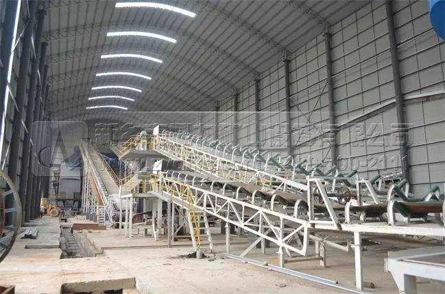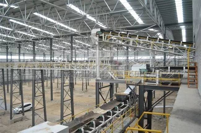 石料破碎后由皮帶輸送機輸送到封閉生產車間內進行二次破碎加工生產。