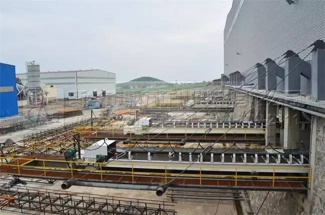 上圖為成品料料倉,布料皮帶機利用移動小車布料,提高石料存料量,每種產品存料量達到2.5萬噸,總存料量達到10萬噸。
