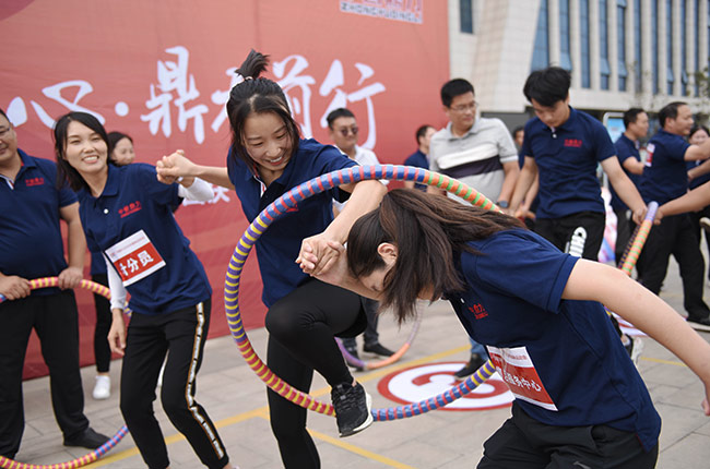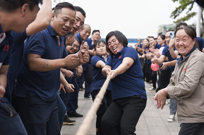 而在團體賽環(huán)節(jié),一圈到底的默契傳遞、蜈蚣競走的嚴謹配合以及拔河大對抗的群體力量博弈……無一不彰顯出鼎力人團結協(xié)作、敢于爭先的奮斗精。