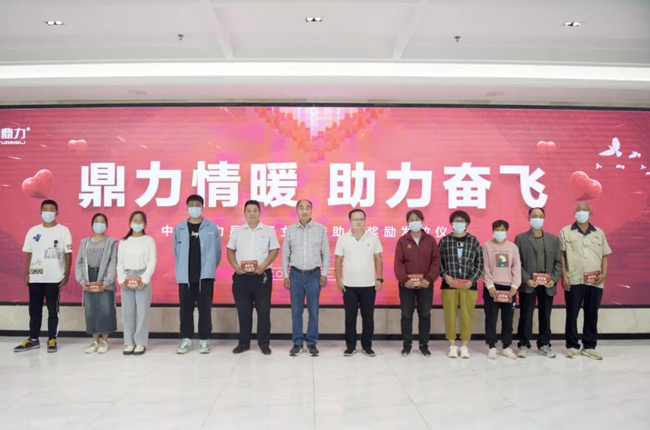 河南中譽鼎力智能裝備有限公司總經理楊乾、行政人事總監劉玲、遠大集團執行總裁耿強和19名即將步入大學生涯的鼎力員工子女及其家長參加助學獎勵發放儀式。
