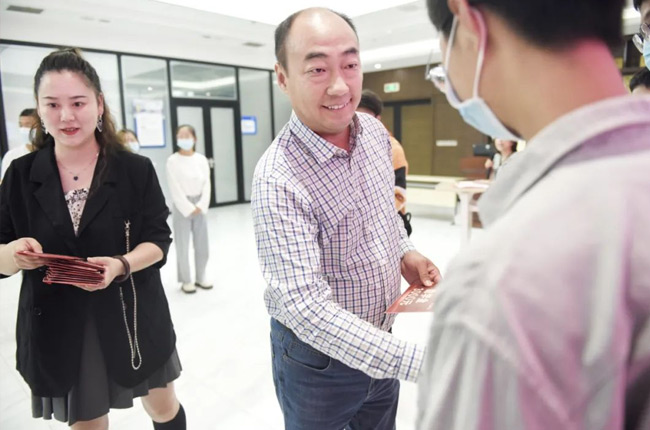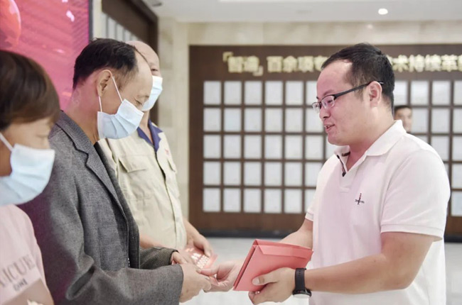 隨后,楊總和耿總為中譽鼎力智能裝備公司、事業部、事業部、藍天環保公司和遠大集團今年考上大學的19名員工子女或家長代表每人發放了3000元助學金,為大家送上企業的關愛與祝福。