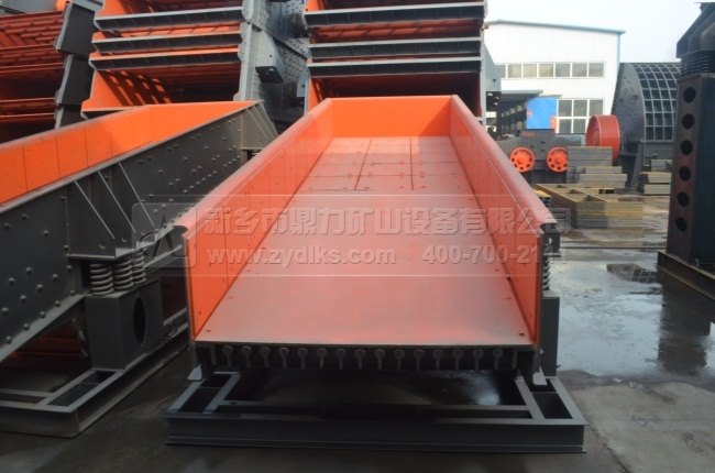 新鄉(xiāng)鼎力在配置石料生產(chǎn)線時(shí)使用的是ZG系列振動(dòng)給料機(jī),它作為連續(xù)、均勻給料的輔助設(shè)備。激振力的大小可以通過調(diào)整偏心塊的相對角度來改變,我們的給料機(jī)在設(shè)計(jì)時(shí)改變了以往平面的設(shè)計(jì),整體機(jī)身有著11度的傾斜角度,利用這個(gè)巧勁給料更省力,下雨天也不容易堵塞。