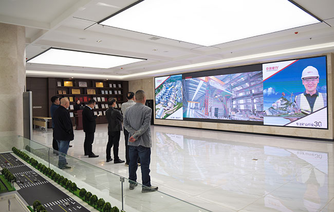考察團(tuán)先來(lái)到中譽(yù)鼎力智能裝備有限公司新廠區(qū),先后了解了中譽(yù)鼎力企業(yè)發(fā)展歷程、五位一體循環(huán)建材產(chǎn)業(yè)園項(xiàng)目、智能化一體生產(chǎn)車間和智能礦山管理系統(tǒng)。