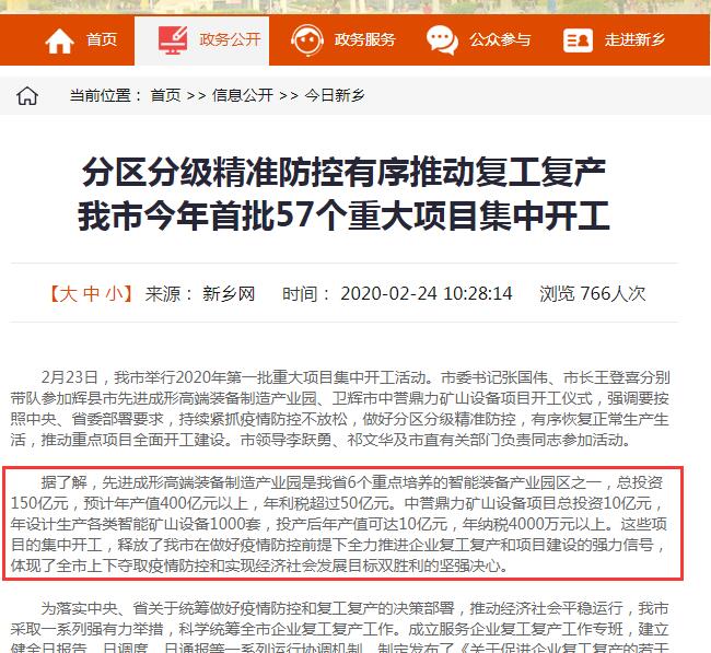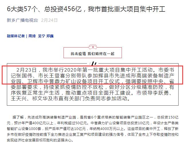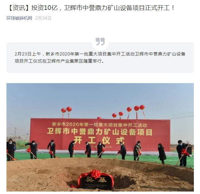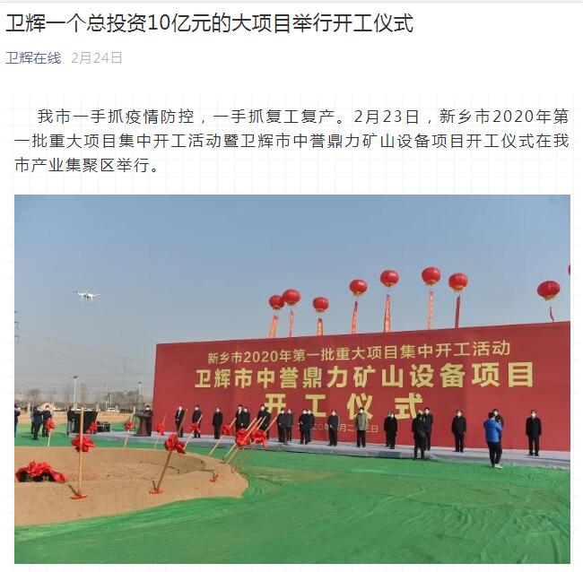 報道鏈接:【資訊】投資10億,衛輝市中譽鼎力礦山設備項目正式開工!