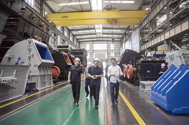 隨后,調研組一行來到中譽鼎力智能化一體生產車間,詳細了解設備研發(fā)、生產線建設運營、管理系統(tǒng)開發(fā)推廣等情況。