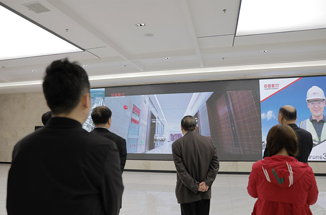 隨后,調(diào)研團(tuán)成員走進(jìn)河南中譽(yù)鼎力智能裝備有限公司,先后參觀了公司文化墻、礦山管理云數(shù)據(jù)中心、智能化展示中心等,對中譽(yù)鼎力主營業(yè)務(wù)、發(fā)展歷程、資質(zhì)榮譽(yù)等情況有了進(jìn)一步的了解。