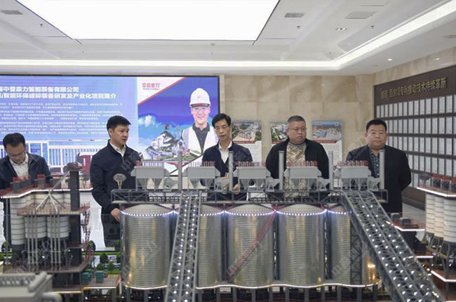 礦業(yè)報(bào)主任、席記者王瓊杰,砂石協(xié)會(huì)副秘書長(zhǎng)趙婧、楊曉東,行業(yè)部部長(zhǎng)劉魁,砂石協(xié)會(huì)兼職副秘書長(zhǎng)張聯(lián)濤,中關(guān)村綠色聯(lián)盟副秘書長(zhǎng)文靜等同行。中譽(yù)鼎力智能裝備有限公司董事長(zhǎng)張治民、總經(jīng)理?xiàng)钋探哟⒔榻B公司相關(guān)情況。