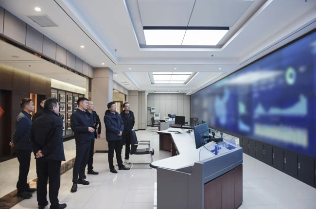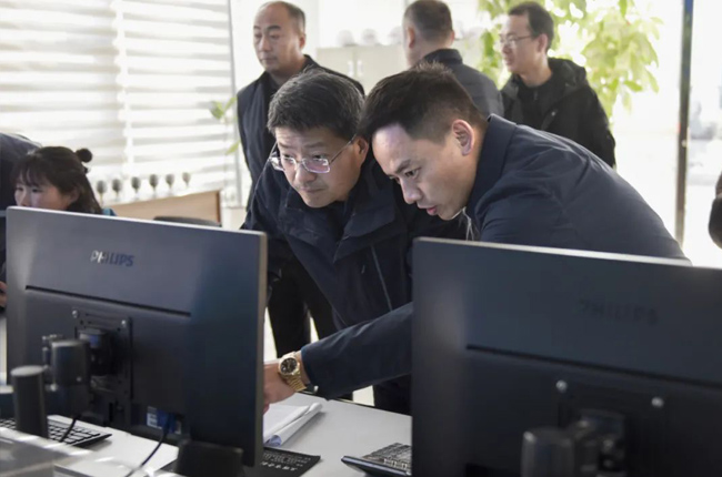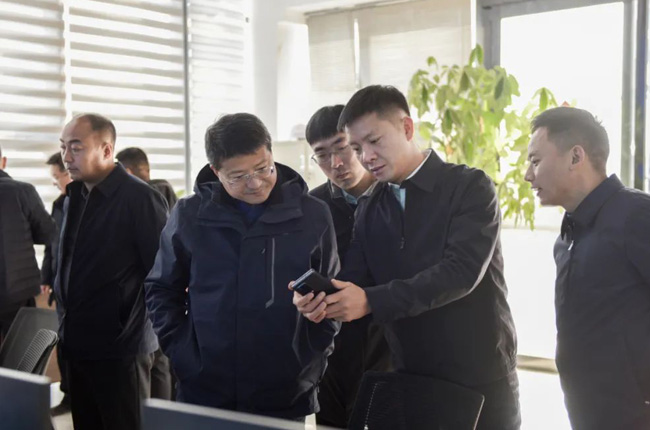 2月23日上午,考察團一行來到河南中譽鼎力智能裝備有限公司,實地參觀了中譽鼎力綠色建材工業互聯網大數據中心和多位一體循環建材產業園項目沙盤,對公司礦山智能管理系統研發及綠色建材項目承建運營等業務有了進一步了解。