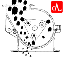 錘式破石機由箱體、轉(zhuǎn)子、錘頭、反擊襯板、篩板等組成。在工作時,轉(zhuǎn)子(盤)在電機的帶動下高速旋轉(zhuǎn),物料從機器上不落入機腔內(nèi),落入高速旋轉(zhuǎn)的轉(zhuǎn)盤,在高速離心力的作用下,與機腔內(nèi)的物料產(chǎn)生碰撞形成快速次破碎;錘頭在高速旋轉(zhuǎn)的轉(zhuǎn)子帶動下對物料進(jìn)行打擊形成次破碎,同時物料獲得很大的動能撞向強內(nèi)壁的反擊板,形成第三次碰撞破碎,這樣物料在機腔內(nèi)受到打擊、研磨,直到物料粒度小于錘頭與調(diào)節(jié)襯板之間的間隙排除機腔。