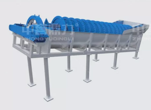 電動機帶動螺旋開始轉動,砂石進入到水洗槽中,在螺旋葉片的帶動下翻轉,砂石快速的與水攪拌融合,使物料中的泥土等雜質與砂分離,清洗掉的雜質隨著溢流管流出,清洗干凈的砂石在螺旋葉片的帶動下,推到高出的出料口排出水洗槽,完成砂石清潔。