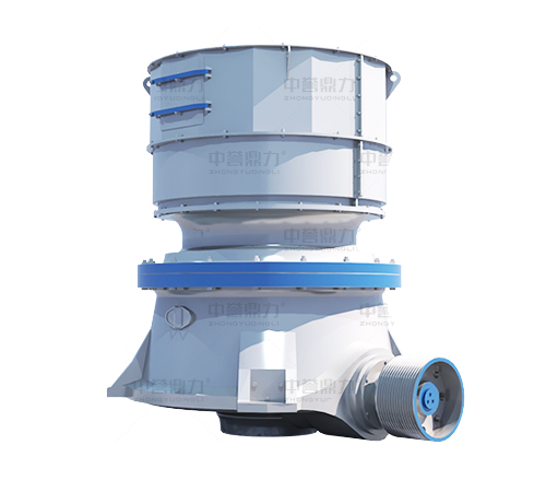 水平軸在電機帶動下旋轉,通過齒輪帶動偏心套旋轉,偏心套帶動動錐做圓錐擺動,與定錐形成連續擠壓,達到破碎石塊的目的。 通過調整動錐底部的液壓缸,可以使動錐上下運動,從而控制排礦口的大小,進而達到調成產品粒度大小的目的。液壓缸具有過鐵保護功能,當有不可破碎物進入破碎腔,液壓缸控制動錐下落,不可破碎物下落排出后,動錐自動恢復,設備恢復到正常工作狀態。