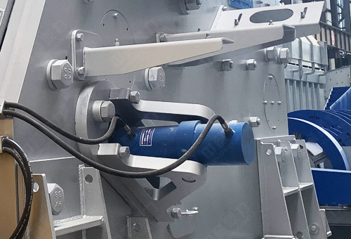 設(shè)備采用液壓雙楔塊調(diào)整裝置,可以快速調(diào)整出料口,調(diào)節(jié)出料粒度更加快速、簡單、安