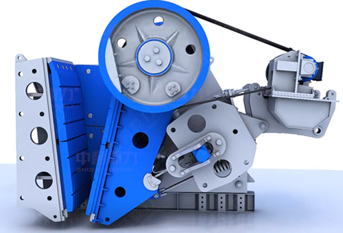 顎式破碎機工作原理簡單,主要通過動靜顎相互擠壓完成物料破碎,皮帶和皮帶輪在電動機驅(qū)動下工作,偏心軸帶動動顎上下運動,當動顎向上時,肘板和動顎夾角變大,這時動顎板會靠近固定顎板擠壓物料,達到完成破碎的目的;當動顎向下時,肘板和動顎夾角變小,動顎離開固定顎板,物料下落,從下方排料口排出機腔。