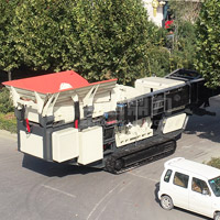 移動式破碎機有履帶移動破碎機以及輪胎式移動破碎機,兩者很顯著的區別在行走方式上,履帶式能夠液壓帶動或無線遙感操控行走,輪胎式移動破碎機需要半掛車頭牽引行走,兩者各有優點,可配置好多種機械。