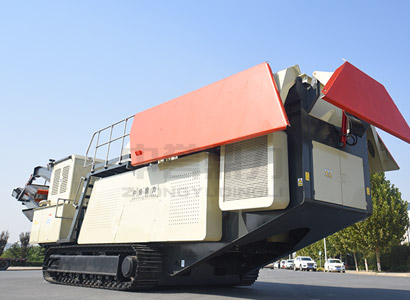 履帶式移動破碎站的行走動力來自柴油發電機,但是工作動力可以選用外部電源或者是柴油發電機,默認動力配置為外接電源型,可使用市電,接通即可生產,維護成本較低;工作動力也可以來自柴油發電機,這樣即使在市電接通不方便的情況下也可以正常生產,移動更方便。