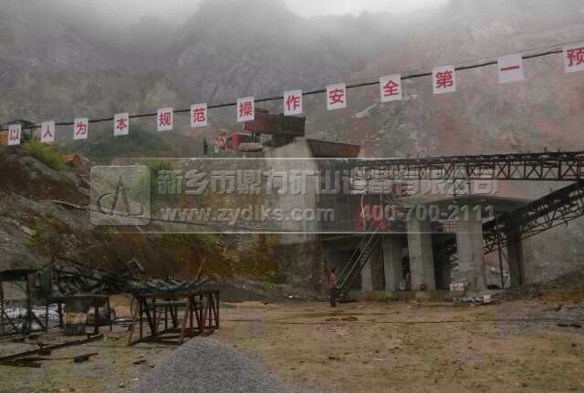湖北咸寧這條時產400噸的石料生產線主要有這些配置:ZGC1538振動給料機、PCZ1615重型錘式破碎機以及3YKZ2060振動篩*2臺等。物料由振動給料機傳送至重型錘式破碎機機腔內進行從上到下的破碎,先粗破,再細破。被破碎后的物料經振動篩進行篩分分級,符合客戶成品粒度要求的物料被傳送帶送至各個成品料堆,不符合的物料被重新送回破碎機進行再次破碎。這就形成了閉路循環模式。這是一條節能、的石料生產線,以少的投資為客戶帶來大的利潤回報,深受客戶的歡迎與信賴。