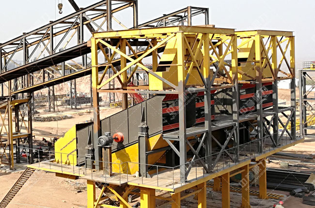 設備配置:振動給料機ZGC2050、重型錘式破碎機PCZ1820、整形破碎機PC1622、振動篩3YKZ3070*6臺、2YKZ3070*2臺、雙轉子制砂整形機ZSJ1218