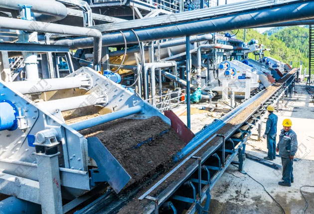 · 洗砂廢水:收集池→泥漿濃縮罐(添加絮凝劑)→板框壓濾機(jī)→清水回用(90%回收率)