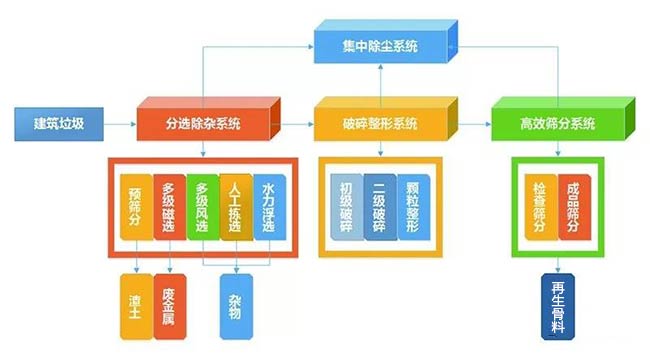 根據裝修垃圾、拆遷廢料、工程渣土和建筑泥漿等建筑垃圾分類進行相對應的分揀處理;