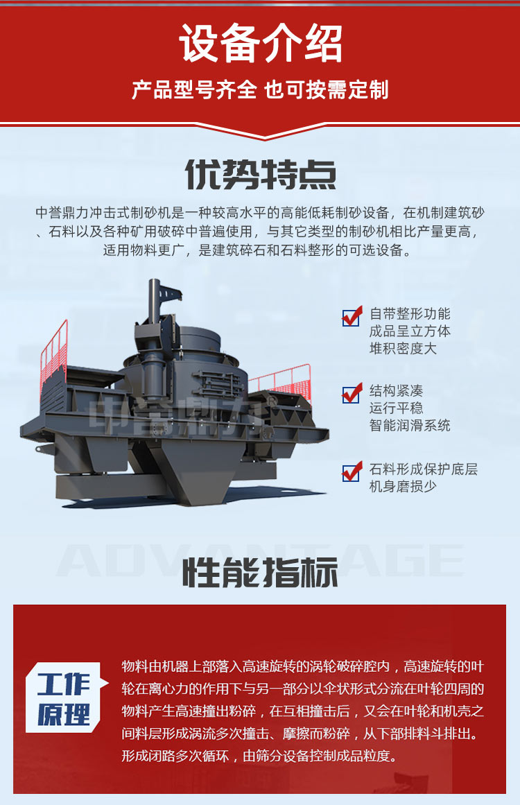 中譽鼎力牌VSI6X立軸沖擊式破碎機破碎效率高、耐磨,有石打石與石打鐵兩種破碎方式,可制砂,能整形,時產量在在109~583噸,成品在0~5mm,設備大概需要幾萬元到五六十萬。