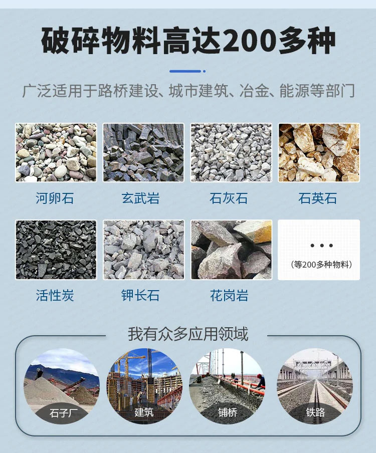 適應物料: | 石灰石等中硬度物料和河卵石等較高硬度物料 |