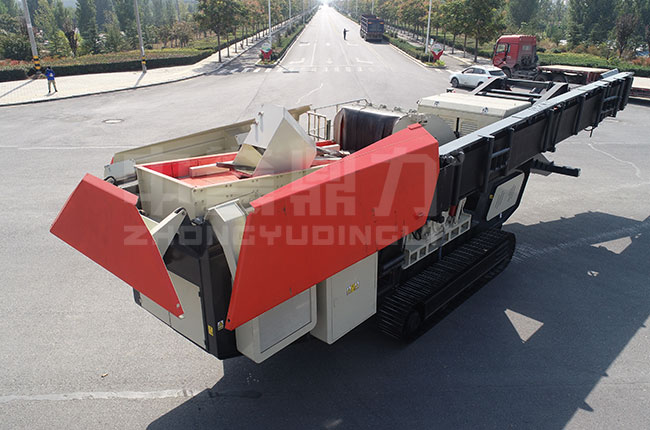 履帶移動(dòng)破碎篩分一體機(jī)自帶驅(qū)動(dòng)系統(tǒng),可以開到破碎現(xiàn)場(chǎng)就近破碎,不需要基地建設(shè)和鋼架結(jié)構(gòu),投產(chǎn)快,還能根據(jù)項(xiàng)目進(jìn)展情況轉(zhuǎn)移破碎現(xiàn)場(chǎng),并且可以實(shí)現(xiàn)爬坡作業(yè),還能原地轉(zhuǎn)向,對(duì)場(chǎng)地不同工作條件的適應(yīng)性比較強(qiáng);