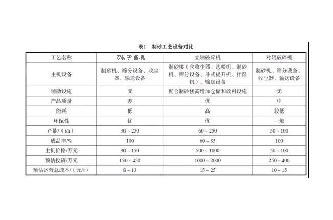 通過對以上3種制砂工藝設(shè)備優(yōu)缺點(diǎn)進(jìn)行對比(見下表):