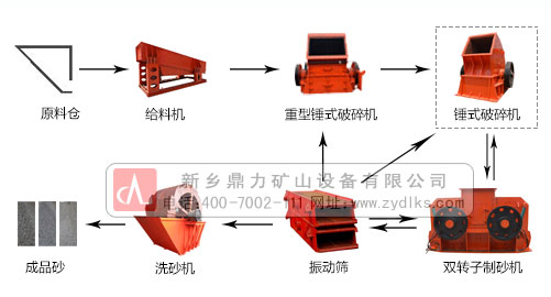 干式制沙生產(chǎn)線 干式制沙生產(chǎn)線流程為:原料經(jīng)過振動給料篩和篩分機組合篩除泥土以后,一般要經(jīng)過粗碎和中碎兩道破碎后再進行檢查篩分,通過篩分將礦石分成3個部分: 1)達不到產(chǎn)品粒度要求的粗礦石返回中碎設(shè)備重新破碎,這部分返料在中細(xì)碎和篩分之