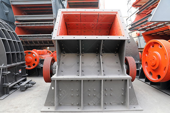 固定式時產100噸重錘式破碎機生產線配置:由于錘破機本身一次成型的特點,因此搭配時產100噸重錘式破碎機生產線時也很簡單,只需要在錘破機的基礎上增加一些輔助設備(給料機、皮帶輸送機、篩分機等)便可制成一條生產線;而如果需要破碎的物料較大的話,可增加一臺顎式破碎機作為粗碎設備,搭配起來很簡單,還可根據實際需求來增減設備。